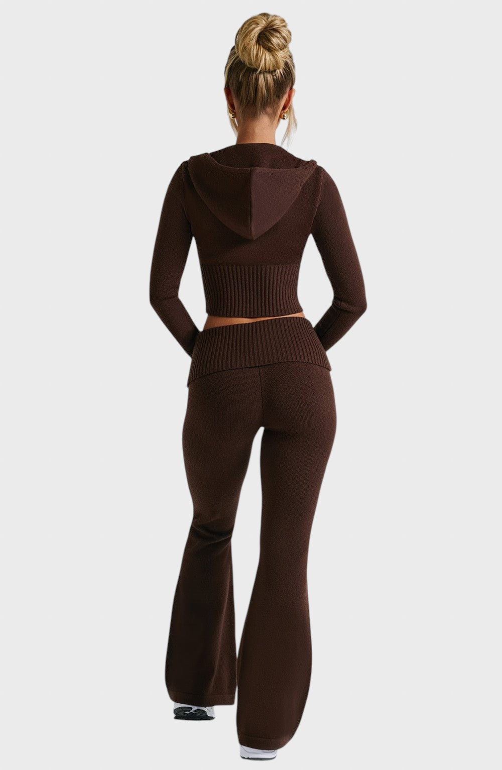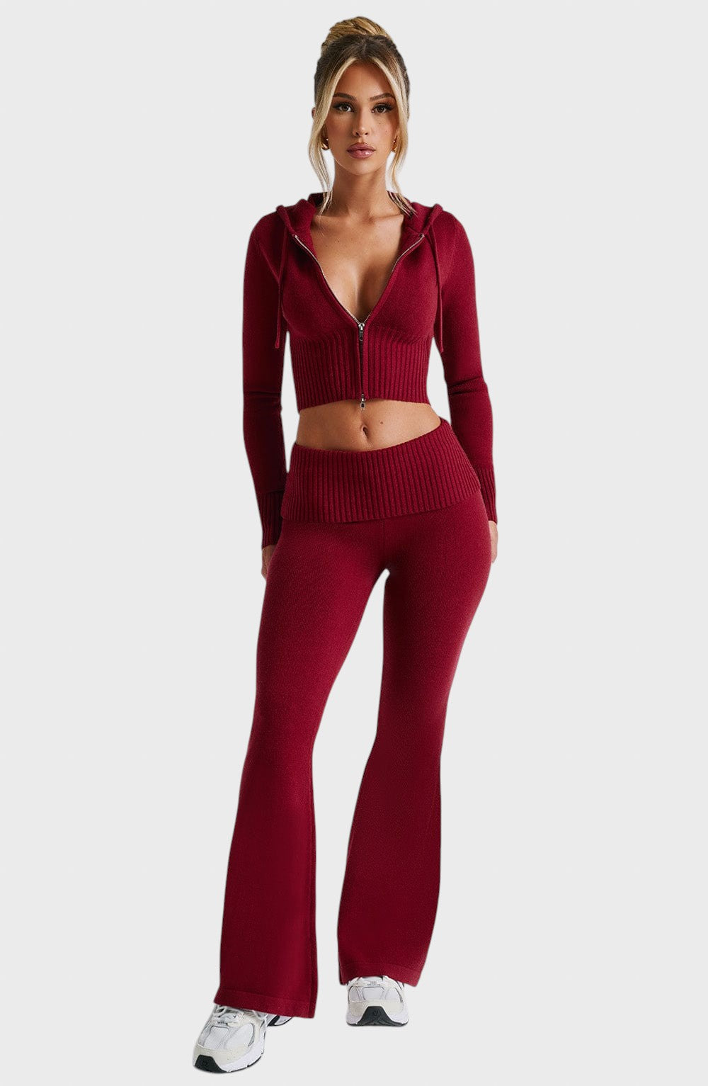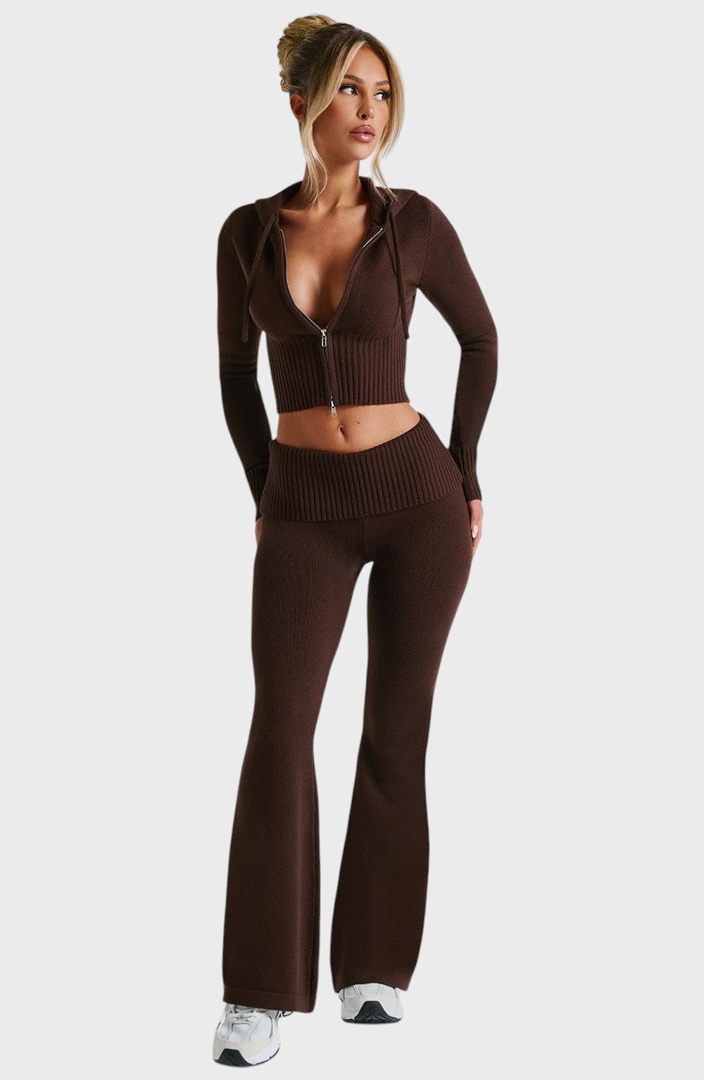 Открийте перфектния баланс между комфорт и чувствен стил с този комплект от оребрена плетка. Той е идеалният избор за непринудена, но елегантна визия , идеален за уикенда, пътуване или релакс със стил.