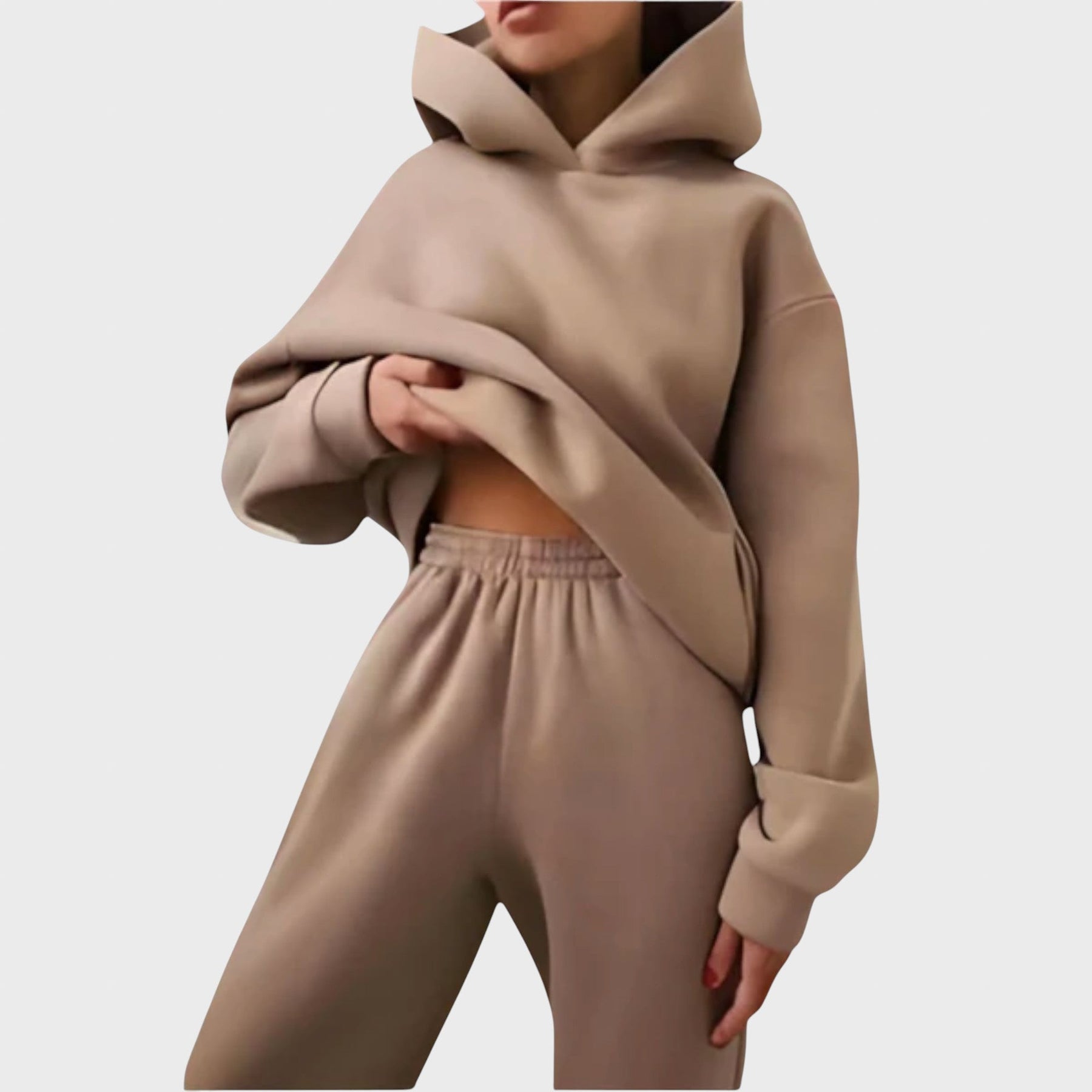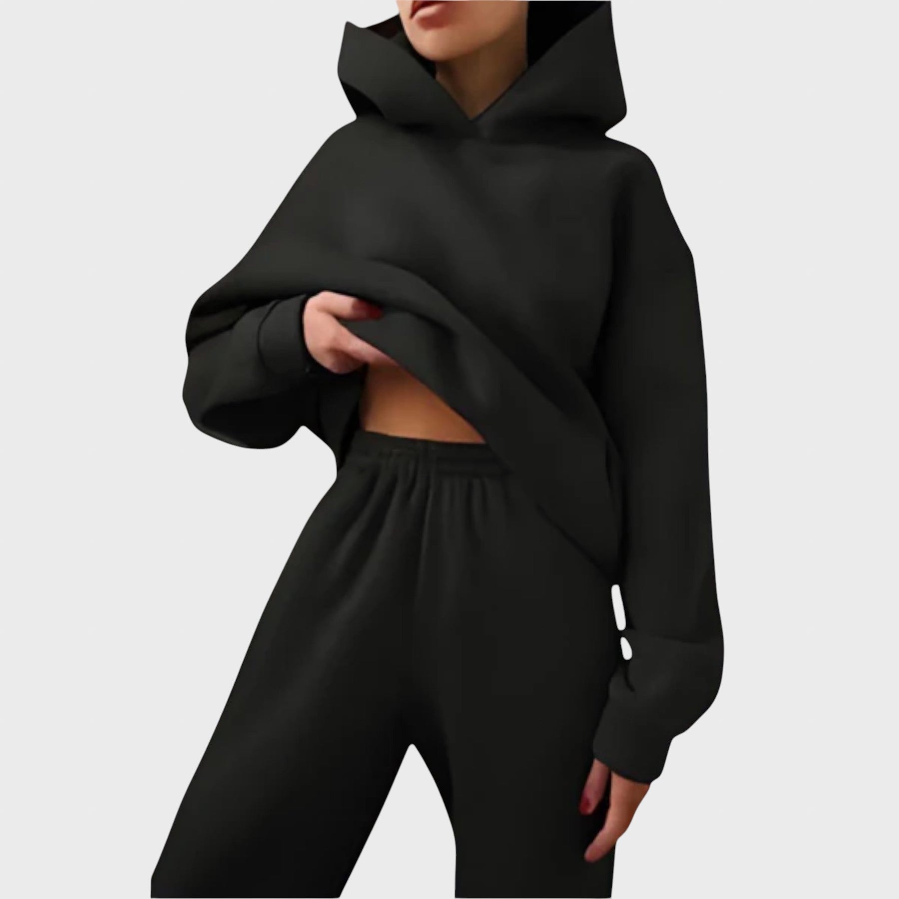 Съчетава класически, непринуден вид с предимствата на целодневния комфорт, което го прави идеален за релакс у дома или за стилно пазаруване. Обмислената кройка и меката материя осигуряват комфорт, без да жертват изискан външен вид, което го прави универсален ансамбъл за всеки ежедневен повод.