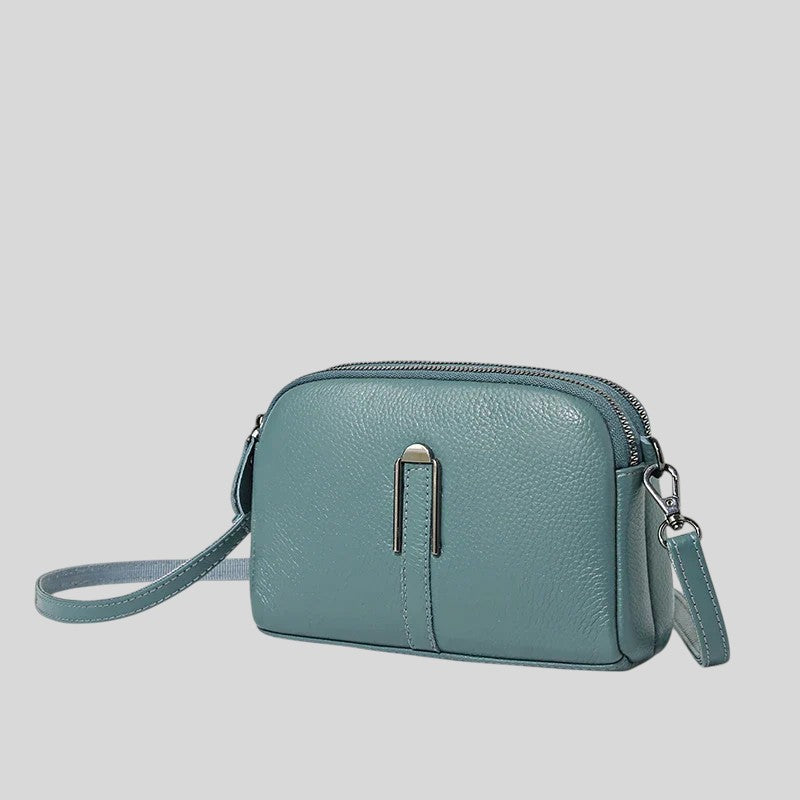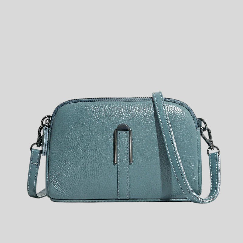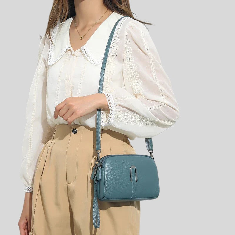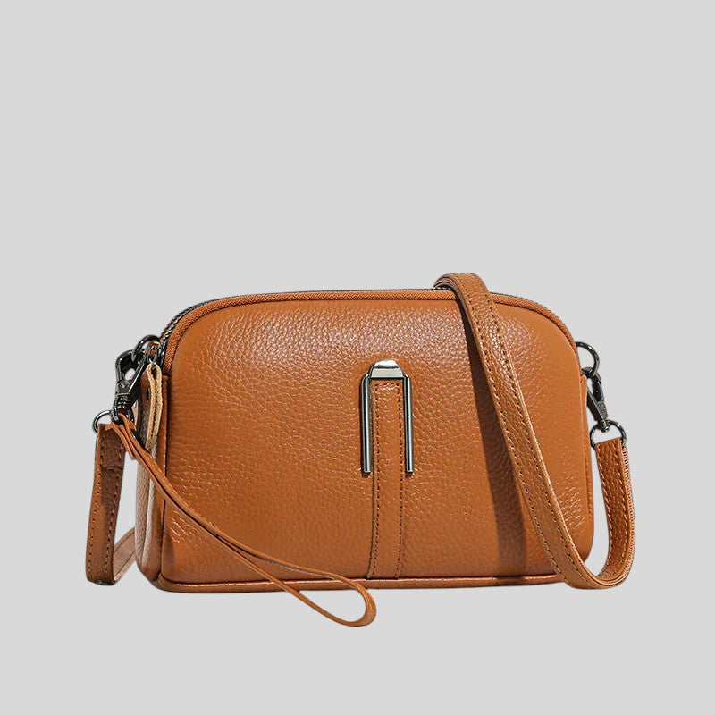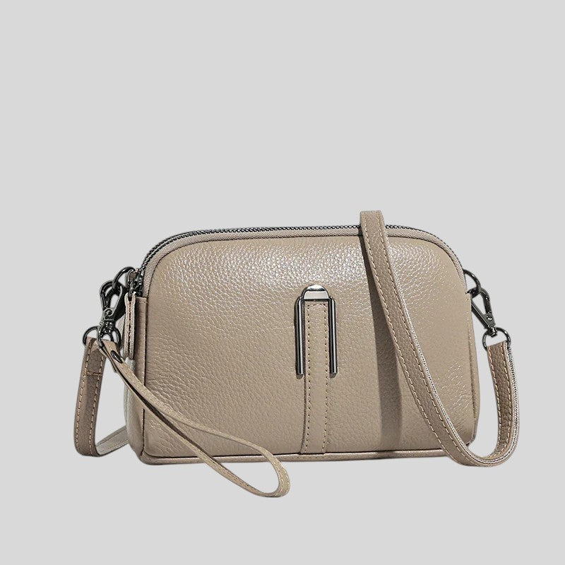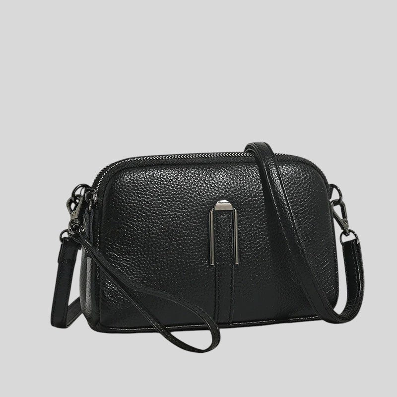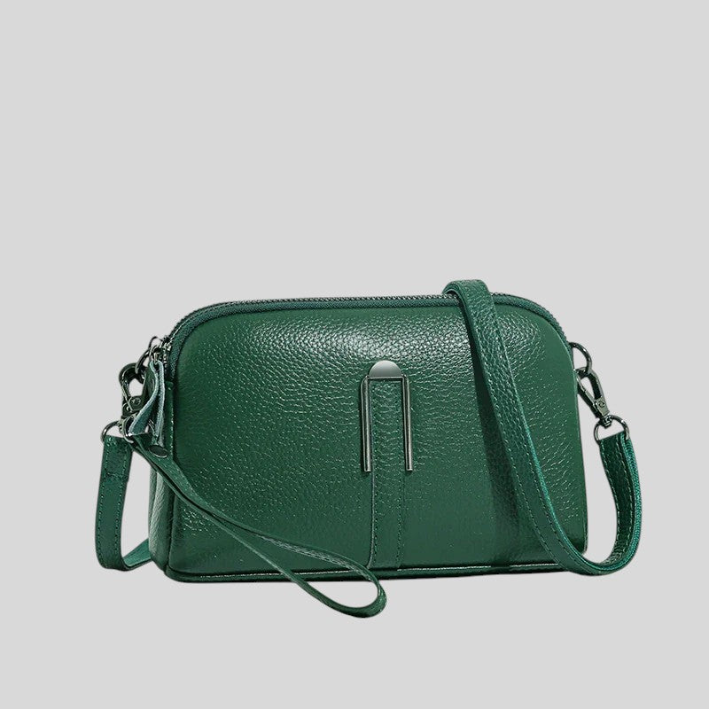 Тази чанта за през рамо съчетава стил и функционалност. Изработена от зърнеста кожа, регулируемата презрамка и затвореното отделение я правят идеалния спътник за всеки ден. Идеална за непринуден, модерен външен вид.